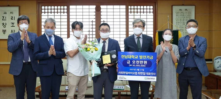 전남대학교 최현일 연구석좌교수가 설립한 ‘㈜최현일바이오랩’이 전남대에 발전기금 5천만원을 기탁했다.