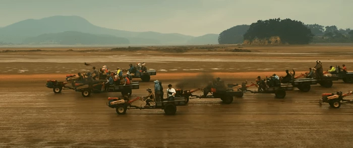 가장 압권은 세계 5대 갯벌로 손꼽히는 서산의 갯벌 위를 경운기를 탄 '바지락 부대'가 질주하는 장면이다.