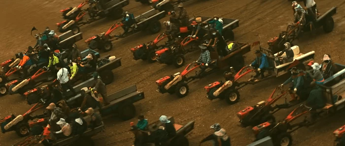 하이어뮤직 우디고차일드의 노래를 배경음악으로 경운기 시동을 거는 장면부터 시작되는 영상은 영화 '매드맥스'의 명장면을 그대로 재해석하며 서산만의 '머드맥스'를 만들었다.