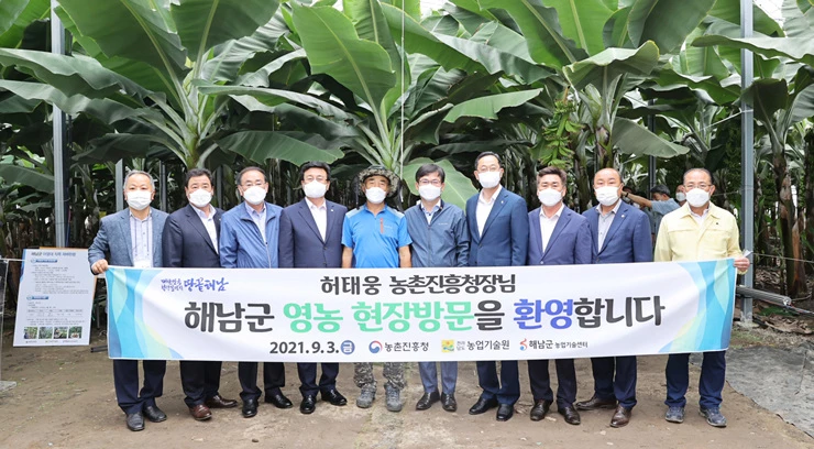 농장을 방문한 허태웅 청장은 신기술 투입 등으로 바나나 등 아열대 과수가 해남군의 지역전략작목으로 거듭날 수 있도록 중앙-지방 농촌진흥기관의 협업을 강화하겠다는 뜻을 전했다.