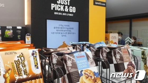 과자를 집어 들고 출입 게이트를 빠져나가자 곧바로 주머니에 있던 휴대전화로 결제 문자와 영수증이 발송되기 때문.