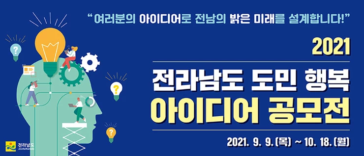 전라남도(도지사 김영록)는 도민과 함께 행복한 으뜸 전남을 설계할 ‘2021 도민 행복 아이디어 공모전’을 개최한다고 밝혔다.
