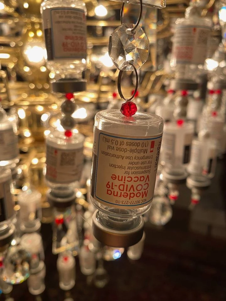 “보고 놀라지 마세요. 모더나 백신으로 '샹들리에'를 만들었습니다”