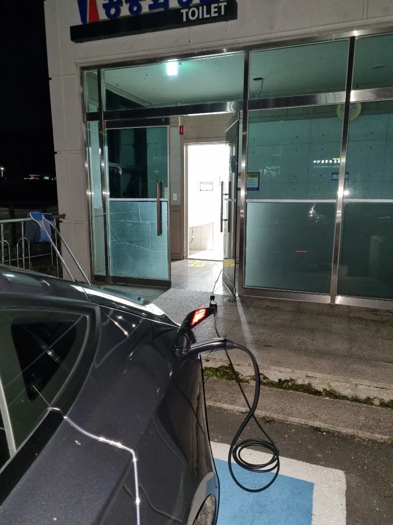 밤중에 보건소 공중화장실에서 충전하는 테슬라