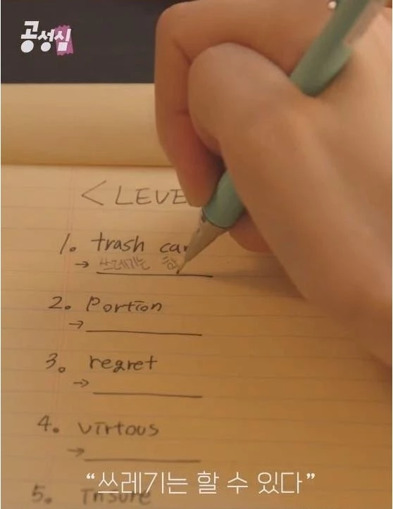 'Trash Can'의 뜻을 묻는 질문에 성심은 자신만만하게 '쓰레기는 할 수 있다'라고 적으며 우쭐댔다.