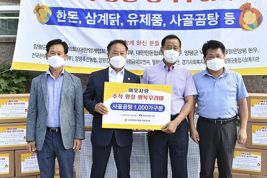 지역 내 소외계층의 풍성한 추석 명절을 위해 양평군축산발전협의회를 비롯한 지역의 기업 및 양평군 해피나눔 1인 1계좌를 통한 따뜻한 관심과 마음이 모여 68백만원 상당의 1,000가구분의 행복꾸러미가 마련됐다.