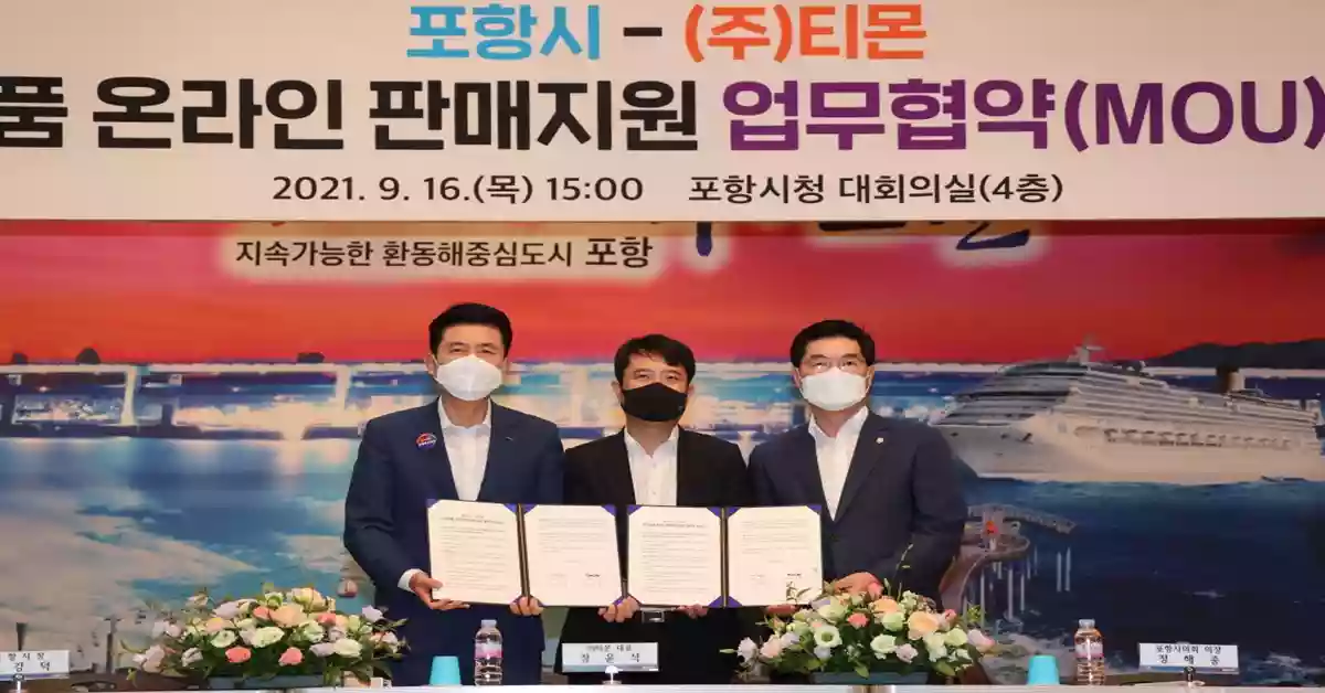 경북 포항시과 (주)티몬이 온라인 판매지원을 위한 MOU를 체결했다./ 포항시 제공