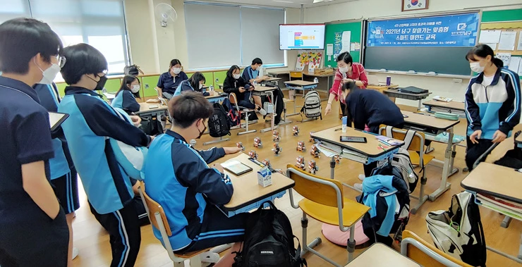 광주시 남구(구청장 김병내)는 대촌중학교 학생들을 대상으로 자신이 설계한 로봇 코딩을 통해 성취감 향상 등 인성 학습을 하고, 논리적 사고력을 키우는 ‘찾아가는 맞춤형 스마트 마인드 교육’을 실시한다.