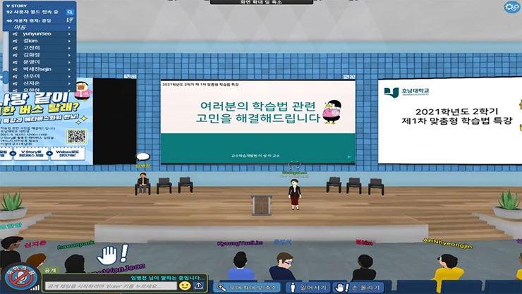 이날 정오 12시부터 2시간 동안 진행된 학습법 특강에서 이성아 교수는 학생들에게 메타버스 플랫폼을 접목해 체험해보고 사전 접수된 학습관련 고민을 토대로 비대면 수업에 도움이 되는 시간 관리와 노트필기 전략을 상세히 설명한 뒤 학생들과 상호 소통의 시간을 가졌다.