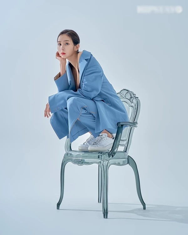 공개된 사진에는 하늘색 슈트에 검정 속옷을 입고 포즈를 취하고 있는 유이가 있었다.