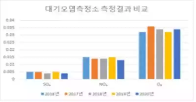 그동안 시에서 운영 중인 11개소의 대기오염측정소 및 4개소의 중금속측정소의 측정값을 2016년 이후 5년간 비교·분석한 결과, 아황산가스·일산화탄소·이산화질소·오존은 연도별로 등락이 있으나, 모두 환경기준을 만족하고 있다.