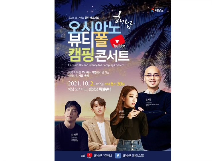 현장 참여를 원하는 경우 카카오톡 채널(해남 오시아노 뷰티폴캠핑콘서트)을 통해 9월 27일 오전 9시부터 접수를 받는다.