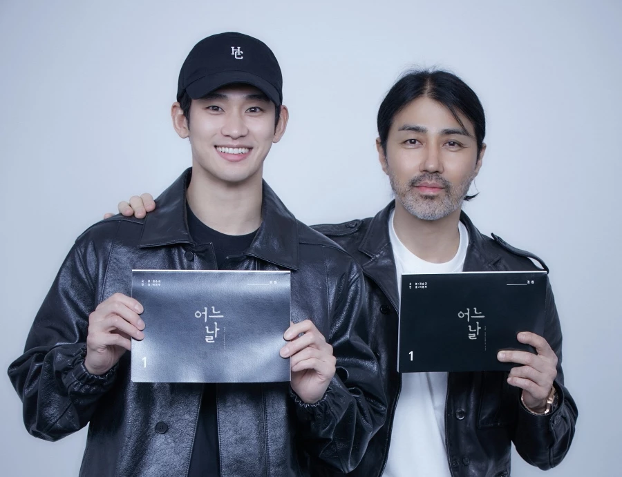 또 다른 현장 사진에서 김수현과 차승원은 대본을 들고 다정하게 어깨동무를 하고 있다. 특히 김수현은 한 손에 다 가려질 듯한 작은 얼굴 크기를 자랑해 네티즌들을 놀라게 했다. 차승원은 연예계 대선배다운 중후한 매력으로 시선을 모았다.