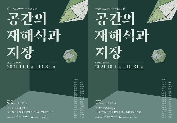담양군문화재단 담빛예술창고에서 오는 10월 1일부터 10월 31일까지 한중수교 29주년 국제교류전 ‘공간의 재해석과 저장’이 열린다.
