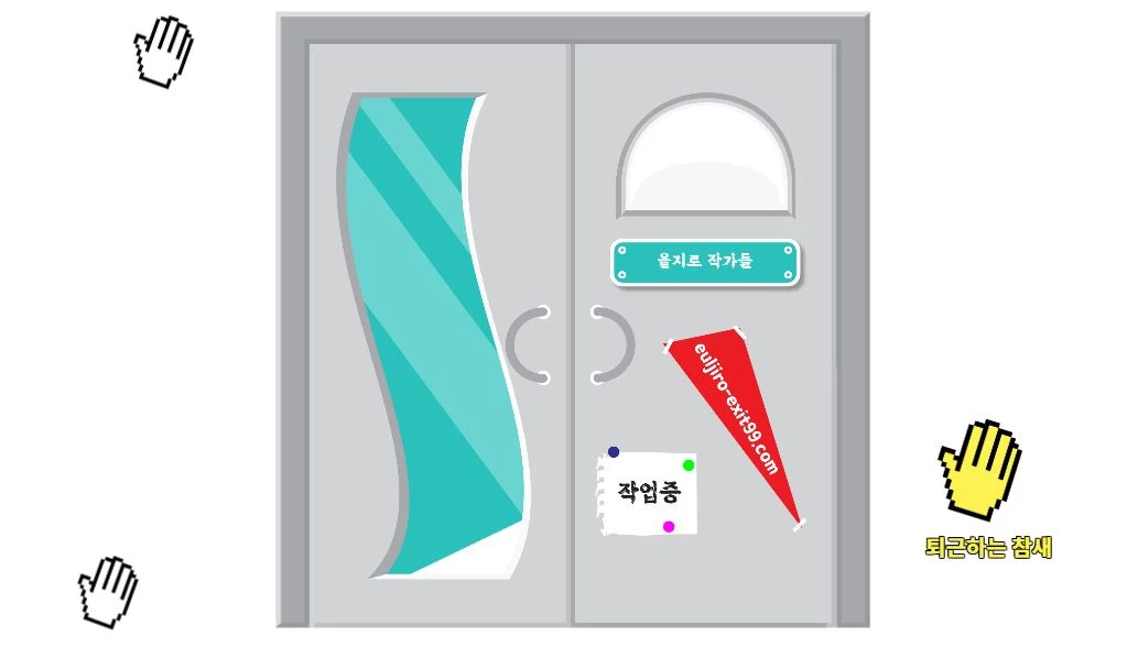 <을지로입구 99번출구> 전시장에 처음 입장하게 되면, 회색 대문과 함께 닉네임을 만들 수 있는 팝업 창이 뜬다. 형용사와 명사가 랜덤으로 조합되며 을지로 어딘가에 존재할 것만 같은 힙한 수식어가 만들어진다. 에디터도 ‘퇴근하는 참새’라는 멋진 닉네임을 얻었다.