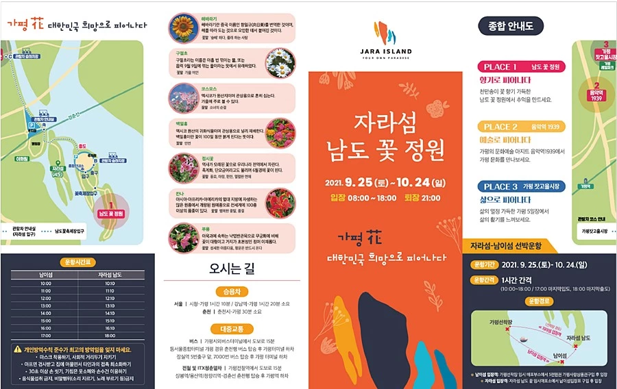 가평군청 관광과에서는 2020년 가을, 2021년 봄 자라섬 남도 꽃 정원 개방행사 내용과 방문객 인터뷰 및 설문 빅데이터를 토대로 하여 新개념 꽃 축제 콘텐츠를 개발하는 학술연구용역을 2021년 7월 8일부터 3개월 동안 진행한 결과 2021년 9월 29일 최종보고회 및 성과품 평가회를 개최했다.