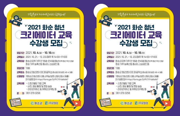 화순군, ‘청년 크리에이터’ 프로그램 교육생 모집