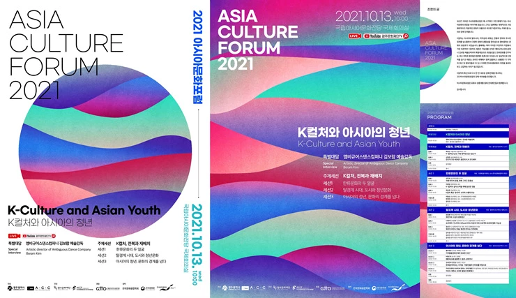 음악, 드라마, 영화, 패션 등 다양한 분야에서 최근 세계적인 이슈를 만들어내고 있는 K컬처에 대해 문화사적 흐름과 현장의 목소리를 함께 들을 수 있는 특별한 장을 만들어낼 것으로 기대된다. 2021아시아문화포럼은 10월 13일 오전 10시부터 유튜브 ‘광주문화재단TV’ 채널과 ‘국립아시아문화전당’ 채널을 통해 동시에 생중계된다.