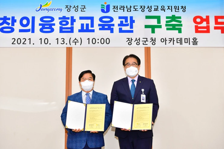 이날 장성군은 회의에 앞서 장성교육지원청과 장성창의융합교육관 구축을 위한 업무 협약을 체결했다. 창의융합교육관 구축사업은 소프트웨어 미래교실, 체험존, 메이커존, 천체관측실 등을 갖추고 미래 교육 인재를 육성하는 사업으로 장성군에서 10억 원을 지원한다.