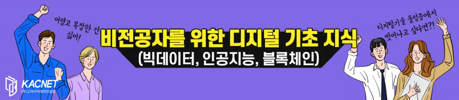 이 가운데 고려아카데미컨설팅은 ‘비전공자를 위한 디지털 기초 지식’ 과정과 ‘쉽게 시작하는 데이터 분석’의 2개 과정을 운영하고 있다. 다양한 디지털 기초 지식을 향상시키고자 하는 이들을 위해 ‘비전공자를 위한 디지털 기초 지식’ 과정을, 데이터 경제 시대에 꼭 필요한 빅데이터의 기초 지식과 분석 역량 및 분석 도구의 활용 능력을 향상시키고자 하는 이들을 위해 ‘쉽게 시작하는 데이터 분석’ 과정을 운영 중이다.