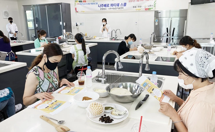 ‘나주 배 파티쉐 스쿨’ 과정은 지역 대표 특산품인 나주배 가공품 상업화와 농가 소득 증대를 위한 10여종의 배 디저트 개발을 목표로 한다.