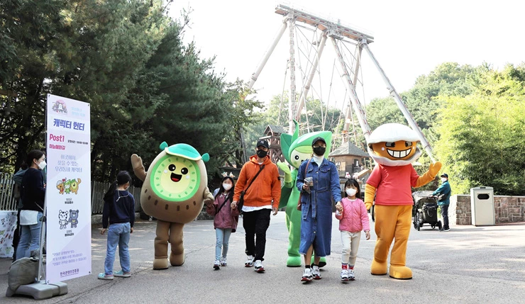 이날 행사에 참여한 보성군 농특산품 캐릭터 BS삼총사(녹차몬, 꼬막몬, 키위몬)는 에버랜드를 찾은 아이들과 소통하며 동심을 저격했다.
