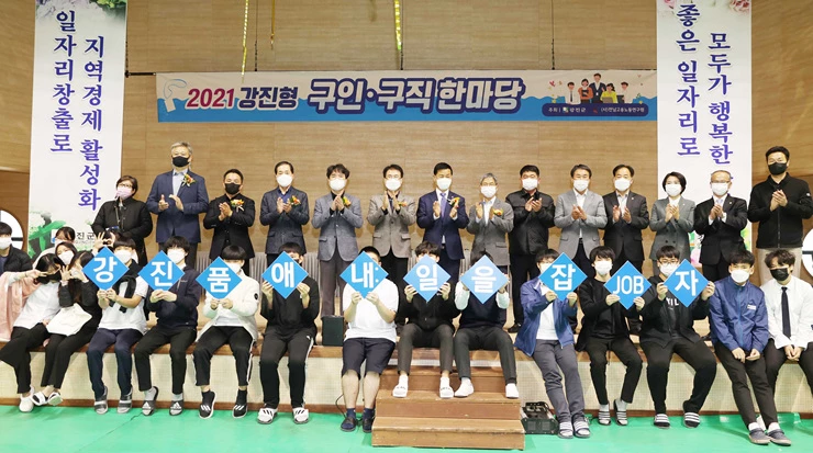 군은 지난 20일부터 21일까지 이틀간 강진군 제1실내체육관에서 관내 우수기업의 구인난을 해소하고 일자리를 찾는 구직자들에게 일자리 정보와 취업 기회를 제공하기 위해 ‘2021 강진형 구인‧구직 한마당’ 행사를 열었다.