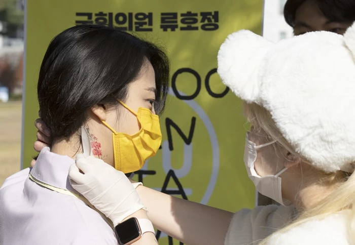 류호정(만 29세) 정의당 의원이 국회 의원회관 앞에서 타투 체험 행사를 열었다.