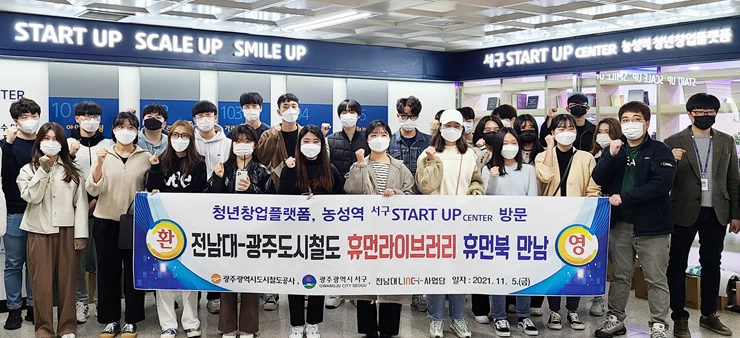 광주도시철도공사(사장 윤진보)와 전남대 LINC+사업단은 5일, 농성역 「서구 START UP 센터」에서 전남대 학생 30여명이 참석한 가운데 ‘GRTC 휴먼라이브러리 휴먼북 만남’행사를 펼쳤다.