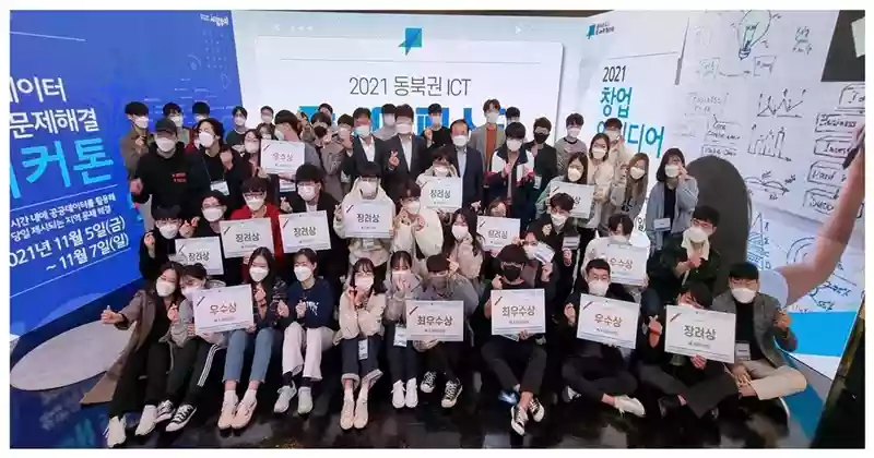 2021 동북권 ICT 잡(JAB)아 페스타 대회 수상자들이 함께 자리를 했다. / 포항테크노파크 제공