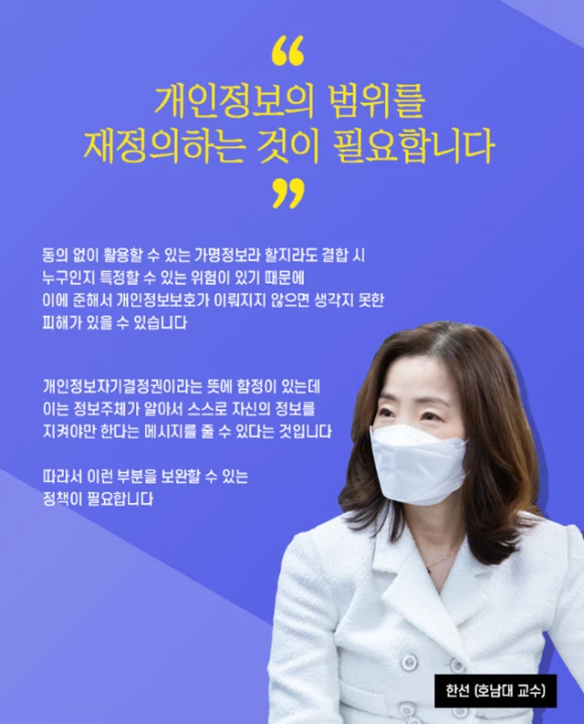 총 50회로 기획된 톡톡릴레이 중 16번째 전문가로 초청된 한선 교수는 디지털정보사회에서는 “개인정보의 중요성을 인식할 수 있는 리터러시와 관련 정책을 발굴하는 작업이 중요하다”고 강조하며 개인정보자기결정권을 실현할 수 있는 관련 정책 개발을 주문했다.