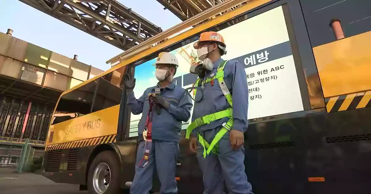 포스코는 지난 1일부터 포항·광양 제철소에서 찾아가는 안전버스의 본격적인 운행을 시작했다. 국내 제조업 사업장 중 작업자들의 안전교육을 위한 전용 버스를 제작해 운영하는 것은 포스코가 처음이다.