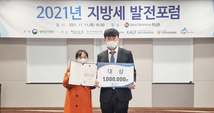 정 주무관은 자율주행 차량 소프트웨어 취득세 개선과 자동차세 감소에 따른 새로운 세수 확보를 위한 주행거리세 도입 및 기대 효과를 발표해 자율주행 차량에 대한 선제적인 과세 방안을 마련한 것으로 호평을 받았다.