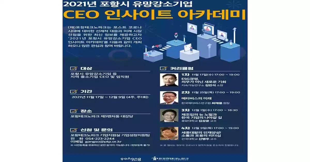 포항테크노파크 2021년 포항시 유망강소기업 CEO 인사이트 아카데미 홍보 포스터 / 포항테크노파크 제공