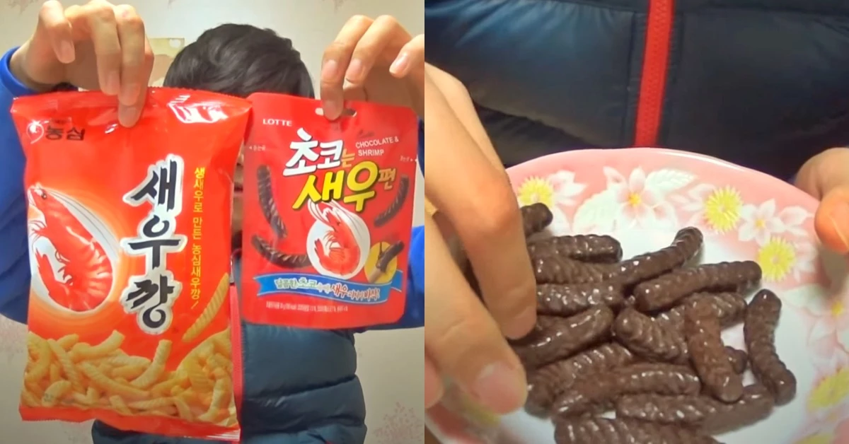 '초코는 새우편'은 2014년에 세븐일레븐 PB 상품으로 출시됐던 과자다. 판매 당시에 새우깡과 초콜릿이라는 색다른 조합과 특유의 단짠한 맛으로 마니아층이 형성됐지만, 어느 순간 자취를 감췄다.