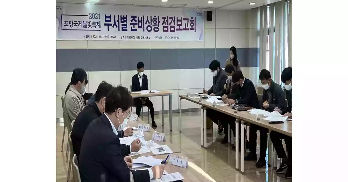 시는 17일 포항문화재단과 함께 ‘2021 포항국제불빛축제’ 의 성공적 개최를 위해 김병삼 부시장 주재로 부서별 준비상황 최종 점검보고회를 가졌다.