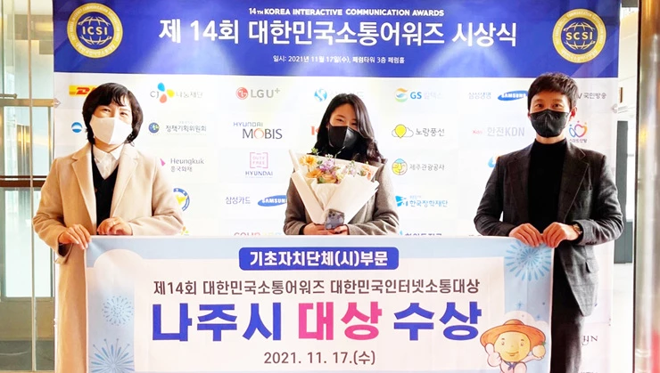 나주시(시장 강인규)는 지난 17일 서울 중구 패럼타워에서 개최된 ‘제14회 대한민국 소통어워즈’에서 기초지자체 시(市)부문 인터넷 소통대상을 수상했다고 18일 밝혔다.