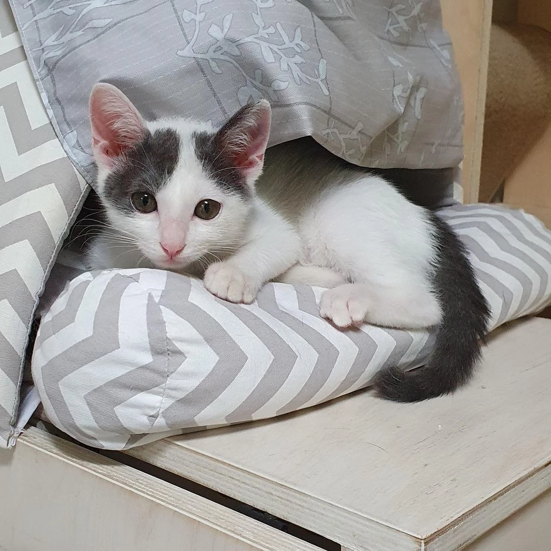 “사료 포대 속에서 발견된 아기 고양이, 이제 고작 4개월입니다” [함께할개]