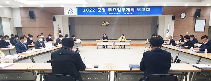 영광군(군수 김준성)은 지난 22일 군청 대회의실에서 김준성 군수 주재로 각 부서장이 참석한 가운데 2022년 군정방향 설정과 주요 사업계획 수립을 위한 2022년 주요업무계획 보고회를 개최했다.