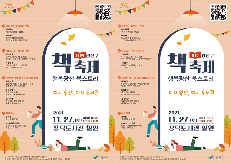 광산구 구립도서관, 사립작은도서관, 그림책 협회 등과 함께 독서 문화 확산을 위해 마련한 첫 행사로, 정부의 ‘단계적 일상회복’ 시행을 맞아 책 읽는 가치와 즐거움을 만끽할 수 있는 다양한 프로그램을 선보인다.