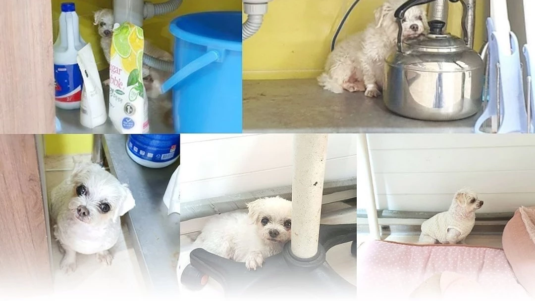 번식장과 보호소에서만 살던 둘리는 좁은 구석이 편한지 싱크대 밑, 가구 틈에서 숨어 있다가 발견된다. 오래 있었는지 그곳에서 잠든 채 발견된 적도 여러 번 있다.