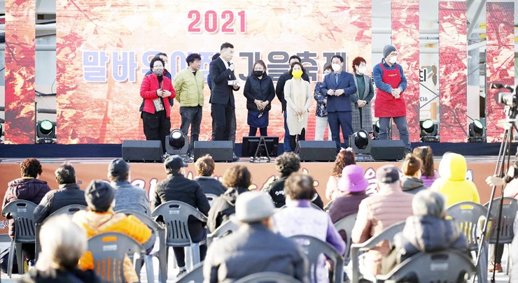 26일 광주 북구 말바우시장 내 제3주차장에서 열린 중소벤처기업부와 광주시, 북구가 주최하는 문화관광형시장 육성사업의 일환인 말바우시장 가을축제 및 바우빵빵극장 개장식에서 상인들과 주민들이 축하공연을 관람하고 있다.