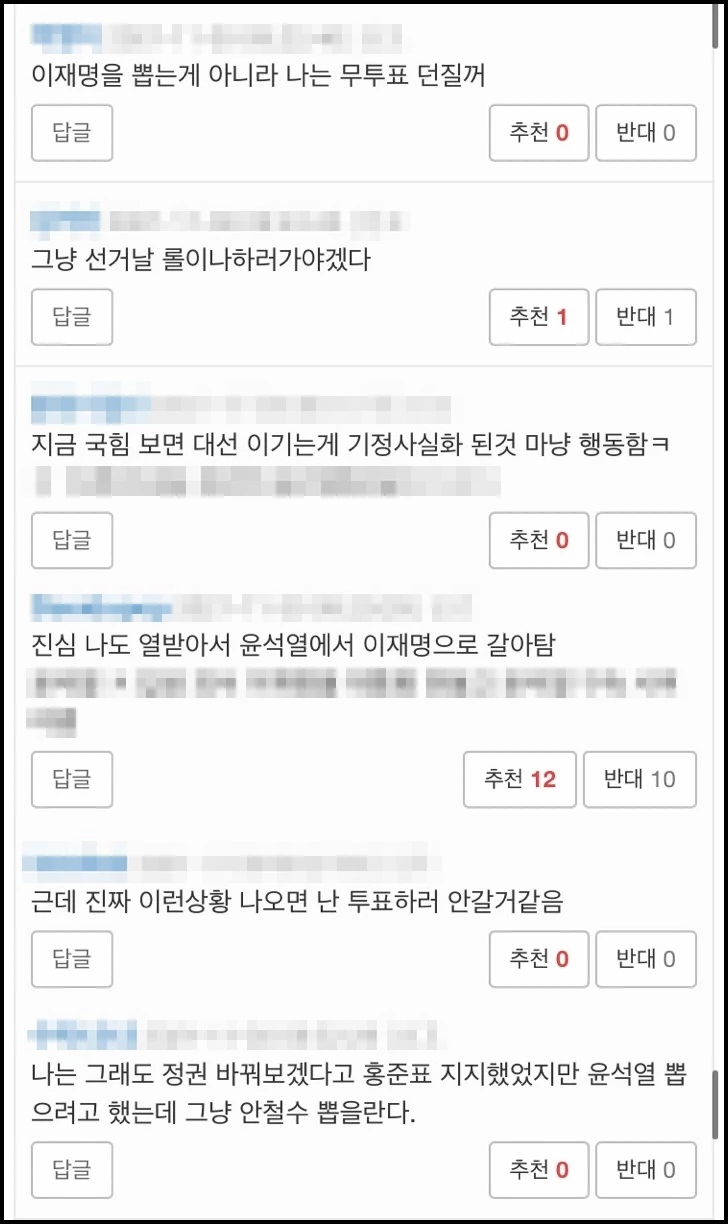 이에 한 네티즌은 "이준석이 사퇴하면 진심으로 이재명 후보를 뽑을 예정"이라는 글을 올리며 강하게 불만을 표시했다. 와이고수 네티즌들은 댓글을 통해 "나도 열 받아서 이재명으로 갈아탄다", "정권 바꿔보겠다고 윤석열 뽑으려고 했는데 그냥 안철수 뽑겠다", "지금 국민의힘 보면 대선 이기는 걸 기정사실화하고 행동한다", "투표 안 하고 무효표를 던지겠다"라며 다양한 반응을 보였다.
