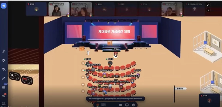 이번 워크숍은 사전학습콘텐츠를 통한 온라인 동영상 학습과 실시간 화상 워크숍의 형태로 이루어졌다. LMS 온라인 강의실에서 ‘메타버스’에 대한 기본적인 개념과 대표 플랫폼인‘게더타운’에 대한 기본 정보 등에 대해 사전학습콘텐츠를 수강하도록 하고 사전학습콘텐츠를 수강 완료한 구성원을 대상으로 AG브릿지 유장휴 대표와 함께‘게더타운’체험을 통한 실습을 진행했다.