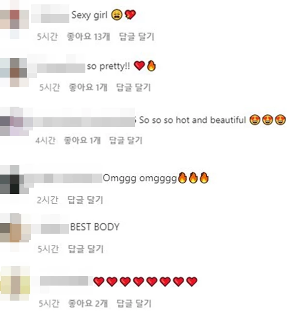 해당 사진을 본 SNS 이용자들은 "섹시하다", "너무 예쁘다", "너무 핫하고 아름답다", "오 마이 갓", "몸매 진짜 좋다", "사랑해요", "인형 같다 진짜" 등 반응을 보였다.
