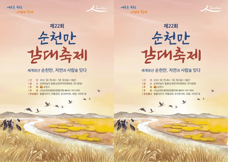 순천시(시장 허석)는 오는 11일부터 12일까지 이틀간 순천만습지 일원에서 ‘제22회 순천만 갈대축제’를 개최한다.