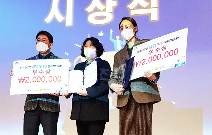 우수상은 바다품애(정희진) 팀의 ‘해조류 부산물을 활용한 유기농업 자재 제조’와 오순덕 씨의 ‘전복 해조 소시지’가 각각 차지해 전라남도지사 표창과 상금을 받았으며, 이외에도 반려동물 사료, 색조 화장품, 탄소 저감 사료 첨가제, 미역귀 두유 등의 아이템이 수상의 영예를 안았다.