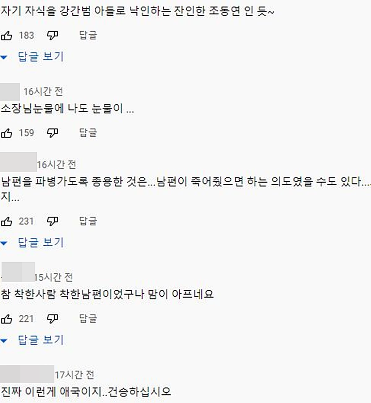 이를 설명하던 강용석 변호사는 급기야 눈물까지 흘렸다. 그는 코까지 빨개질 정도로 울컥해 "너무 가슴이 아프다"며 울먹였다. 네티즌들은 "현실판 퐁퐁남", "완벽히 설거지 당했다", "진짜 해도 해도 너무한 조동연" 등 비판을 쏟아냈다.