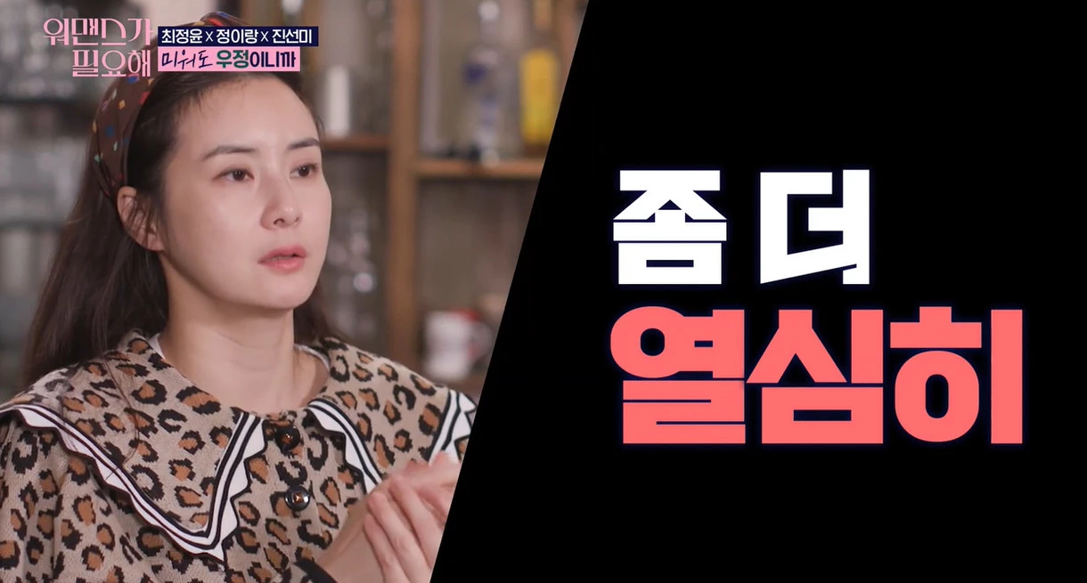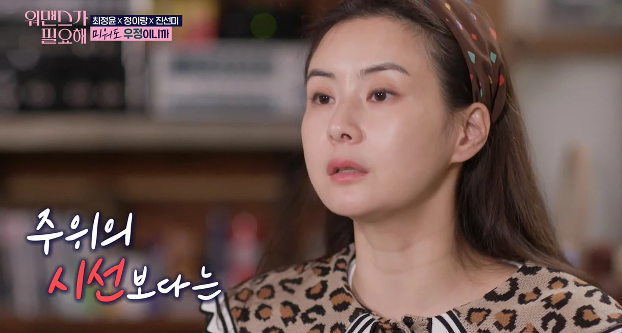 지난 9일 방송된 SBS '워맨스가 필요해'에서는 최정윤이 동료 연기자이자 절친 진선미와 진지한 대화를 나누는 장면이 그려졌다.