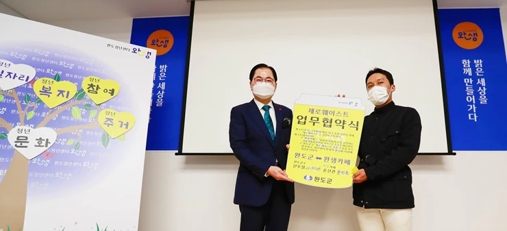 한편 이날 완도군과 완생카페는 기후변화 대응, 탄소 중립 실현을 위한 ‘제로 웨이스트’ 실천 협약식을 가졌다.